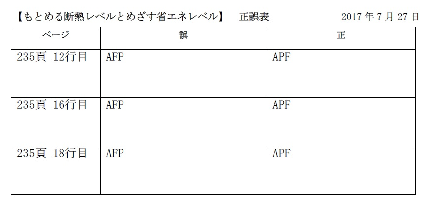 『もとめる断熱レベルとめざす省エネレベル』訂正とお詫び